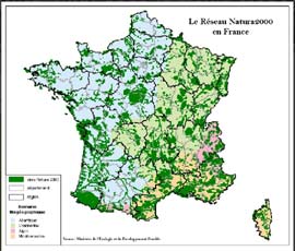 Le réseau Natura 2000 français couvre 6,8 millions d’hectares, soit 12,4% du territoire terrestre métropolitain. Il comprend plus de 1700 sites et est divisé en quatre régions biogéographiques :