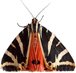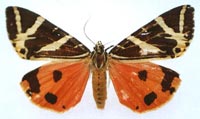 Papillon de taille moyenne aux ailes antérieures de 23 à 29 mm à fond blanc crémeux, striées de bandes noires, aux ailes postérieures orange avec quelques taches noires, à l’abdomen orangé orné d’une ligne médiodorsale de taches noires.